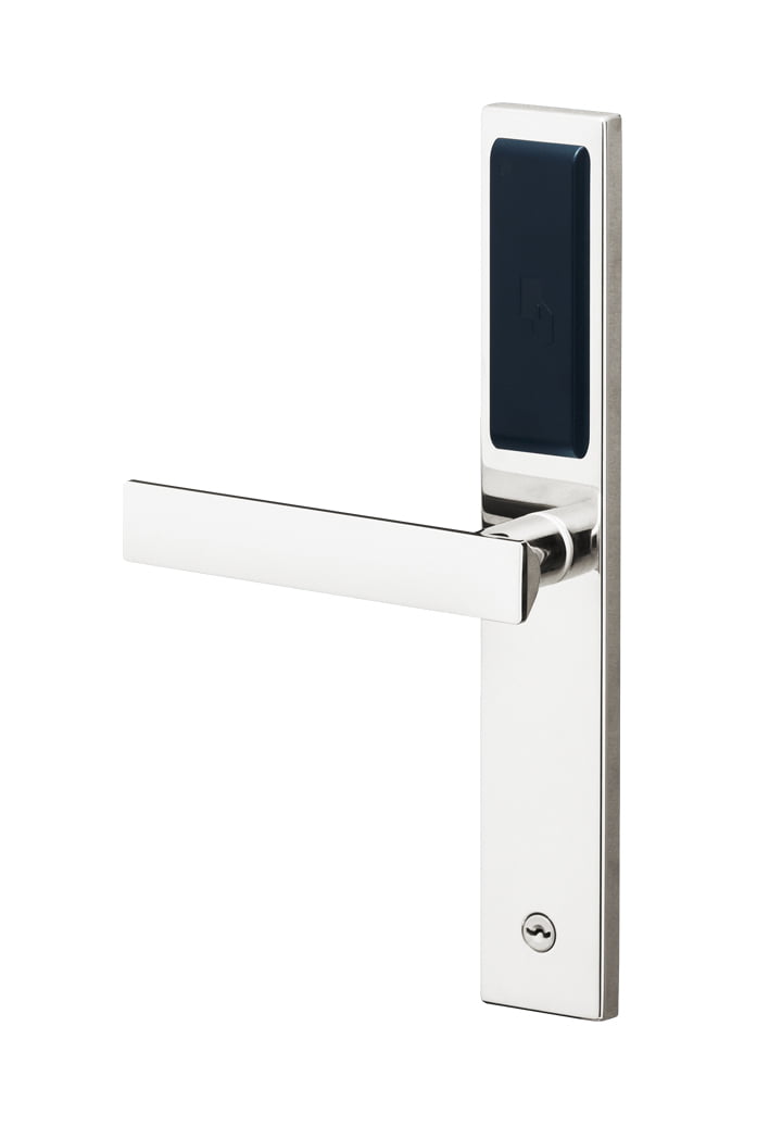 非接触ICカードMIFARE®を使用するホテルカードロックです。細くシンプルな造形は多様なホテルの意匠と調和し、簡潔な操作性は様々な国や地域から訪れる老若男女のユーザーに快適なユーザビリティを提供します。