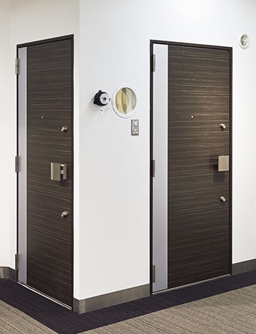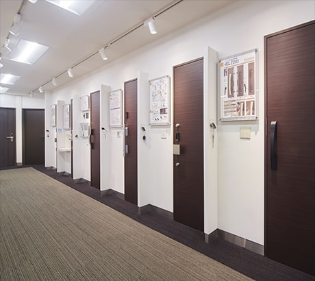 防犯性能の高い防犯建物部品をはじめとして、最新の住宅・ビル用セキュリティシステムや、ホテルカードロックシステムなどの実働モデルを展示し、実際にご使用いただいてご検討いただけます。またレバーハンドル、室内錠などの各種デザインや、仕上も実物をご覧いただけます。多数の皆様のご利用をお待ち申し上げております。