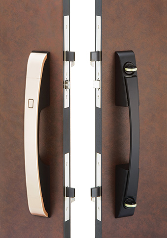 ID認証のリーダーをグリップに内蔵し、さらにシリンダーを隠したことで一体感とスマートさを実現。