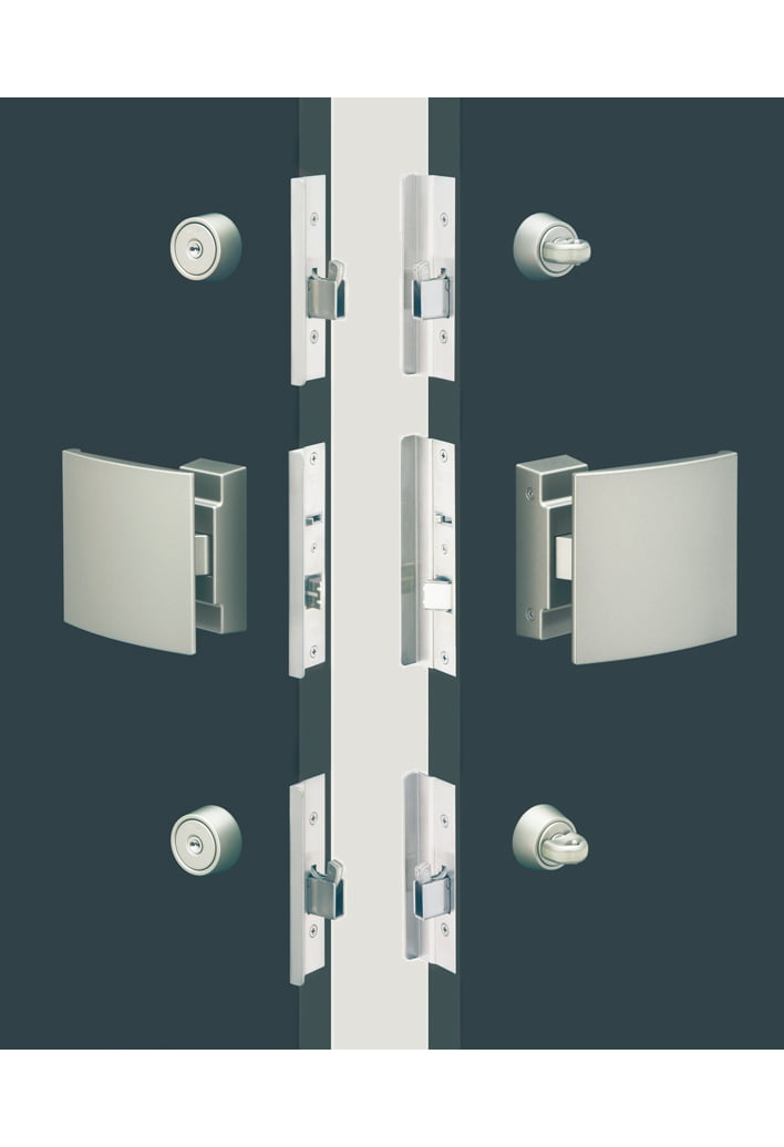 室内外の気圧差により重い状態の玄関ドアを、スムーズに開扉できる集合住宅用プッシュプルハンドル錠です。通常のハンドル操作でラッチ解除とドア開扉機能に加え、枠側受け部をテコの原理で強く蹴り出し、ドア~枠に隙間(通気口)を生じさせることで、開扉力を軽減します。